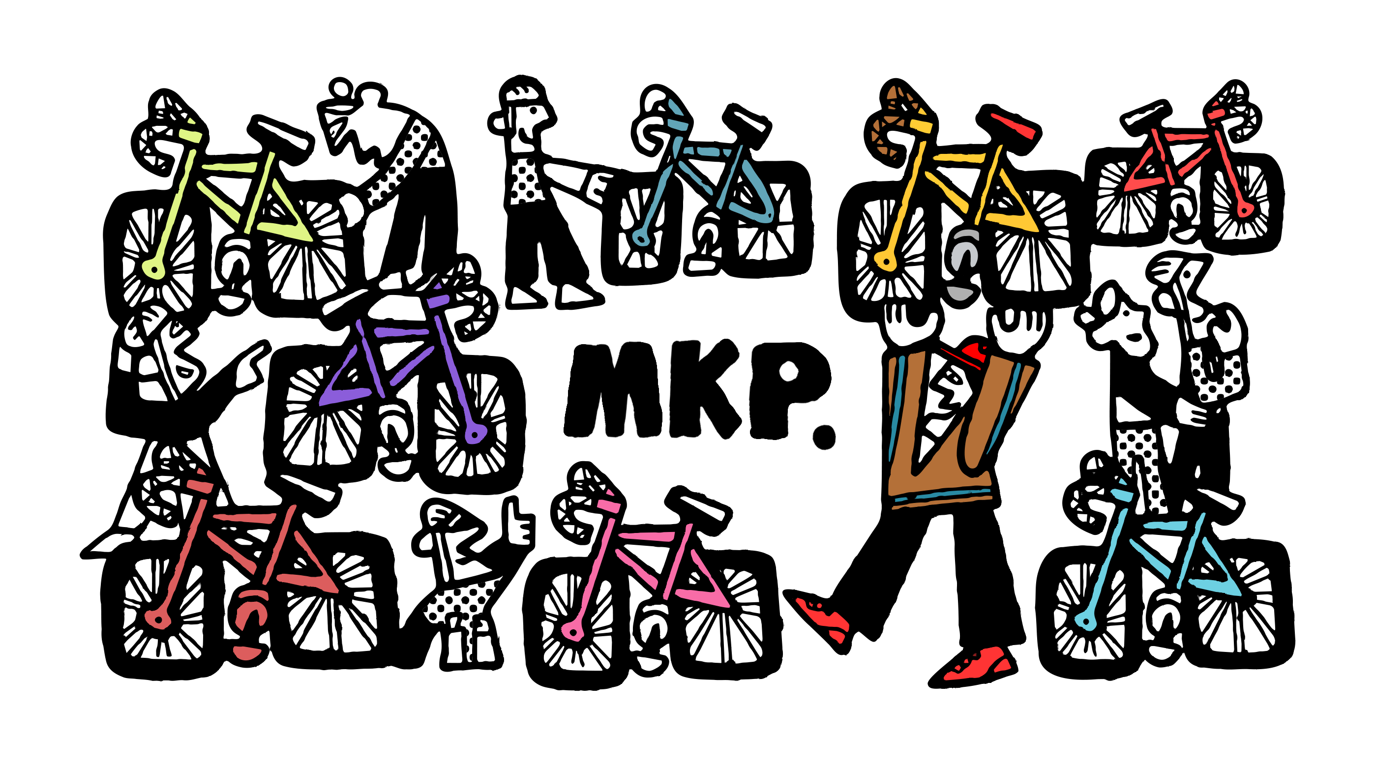 A custom illustration created for a local Melbourne bicycle shop, designed to be displayed in-store and capture the energy and personality of the MKP community.